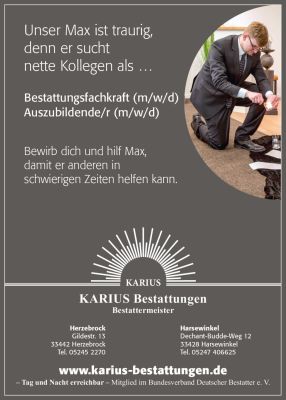 Bewerbungen gerne per Mail an: info@karius-bestattungen.de.